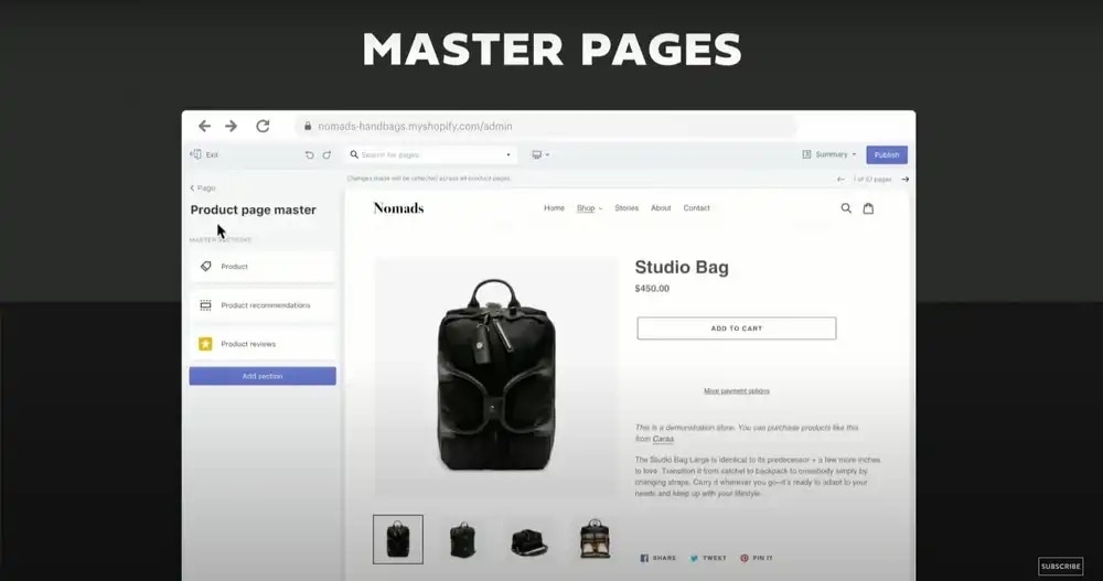 - The master page is like the template in the previous architecture but with these new updates, you can have a master product page for all products with product info and you can add or change dynamic section for each product page without the need for custom alternate templates